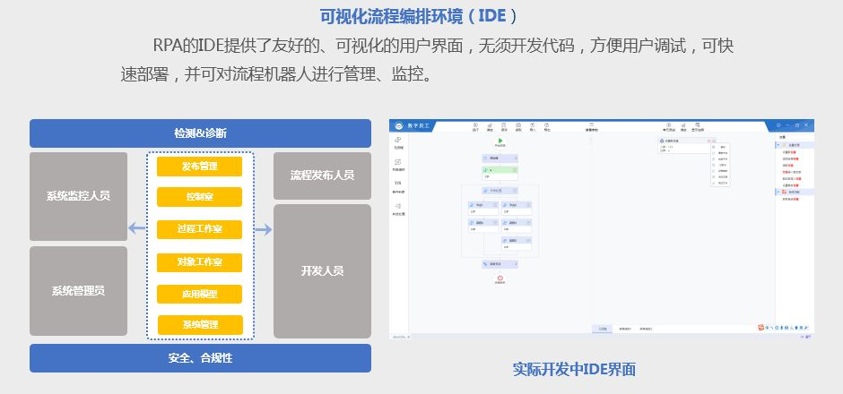 4、德讯RPA提供了友好的、可视化的用户界面,无须开发代码,方便用户调试,可快速部署,并可对流程机器人进行管理、监控。